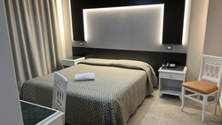 l Grand Hotel Montesilvano, elegante edificio di 7 piani con 150 camere di varie tipologie, matrimoniali/doppie, triple, quadruple con letto a castello. Tutte le tipologie sono dotate di servizi privati con vasca (doccia su richiesta), aria condizionata autonoma, cassaforte, balcone, tv color Led, minifrigo, asciugacapelli a parete, porte con apertura a scheda magnetica. Il Grand Eurhotel, edificio di 9 piani, 130 camere/appartamenti rinnovati in stile moderno. Sono tutti dotati di terrazzo, frigo, tv color, bagno privato con doccia, aria condizionata autonoma, cassaforte, asciugacapelli da parete. |